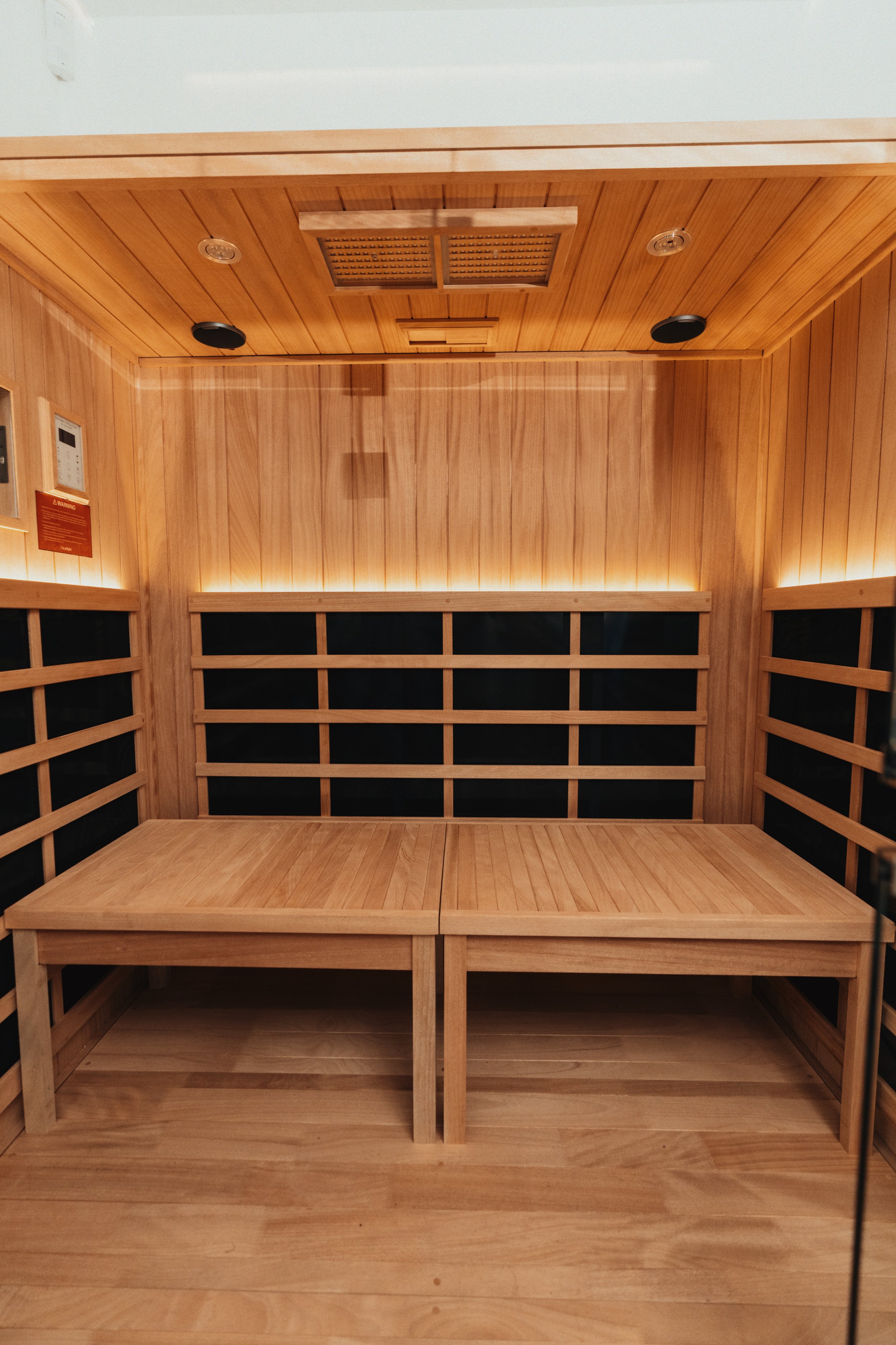 Our sauna warms you from the inside out to support circulation, ease muscle tension and encourage natural relaxation.